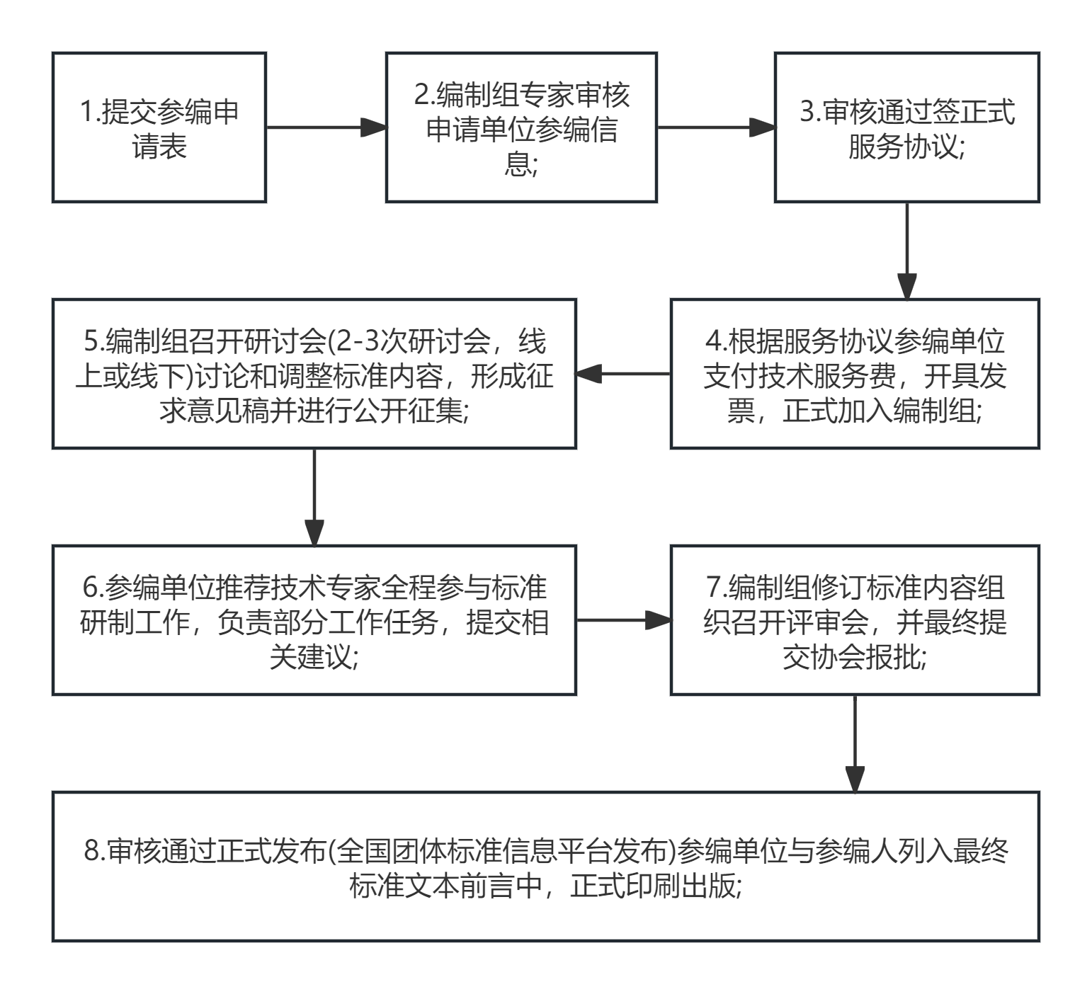 4.能够指派固定的专业技术人员全程参与标准的起草、讨论、修订和审定等工作。