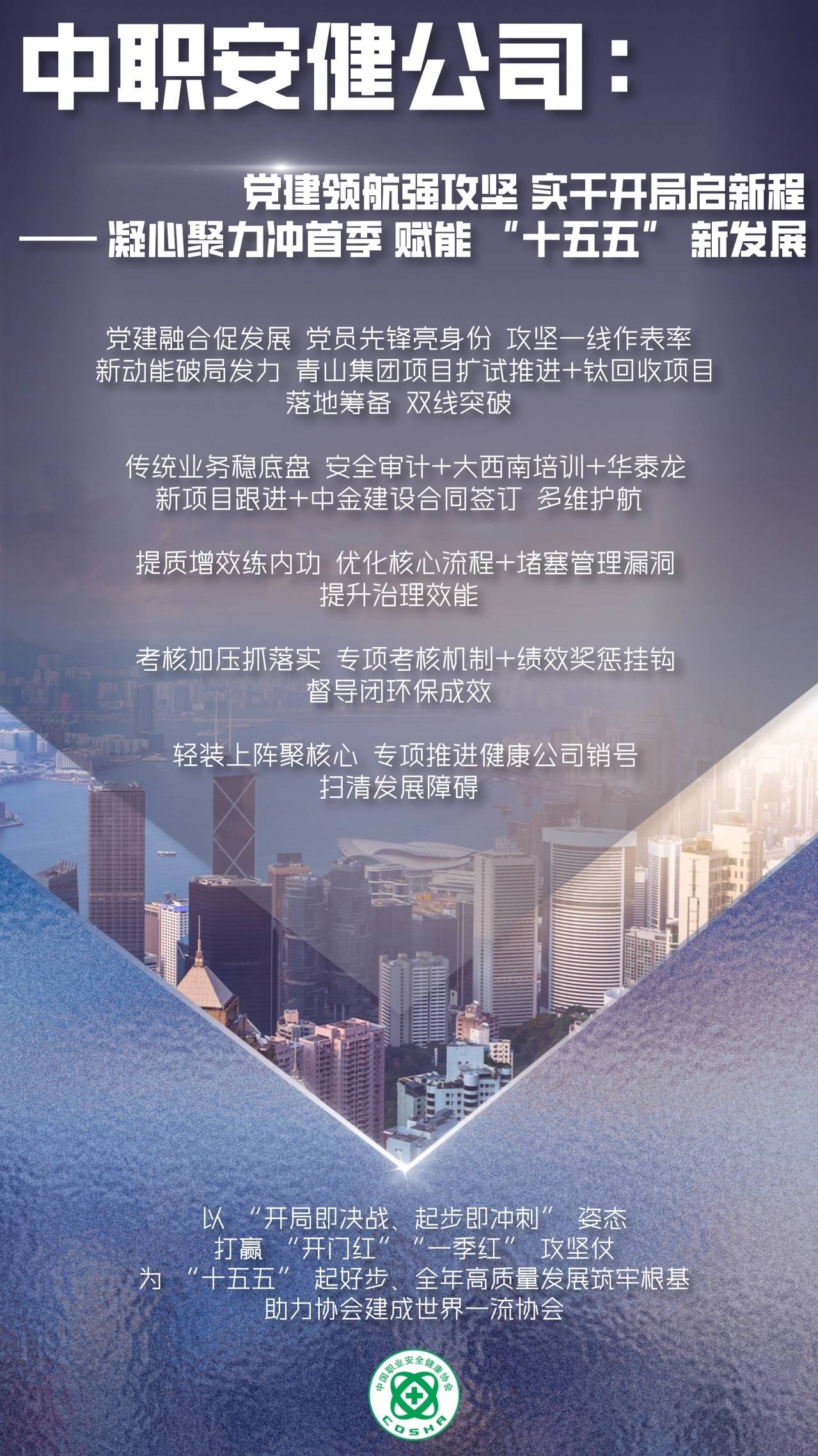 针对王德学理事长提出的协会“十五五”期间的工作基调及导向、实施“五大工程”“十化”建设,结合上述要求,谋划公司“十五五”期间的工作,继续以习近平新时代中国特色社会主义思想为引领,紧紧围绕协会党委中心任务,强管理、提素质、长本领,见实效,坚持公司双轮驱动发展。聚焦顺利完成一月份、一季度开门红,为“十五五”起好步,打下坚实基础的核心目标,明确提出以下具体工作要求: